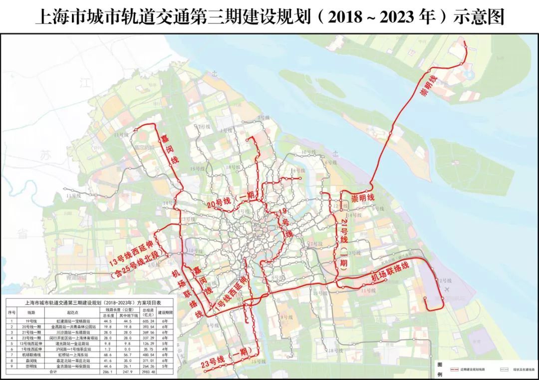 上海这次总共批下来了六条地铁,还有三条市域铁路。到机场、嘉定、嘉善、崇明的,都批了。总投资2983.48亿,也就是3000个亿直接扔出去了。