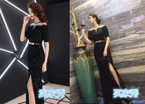 这种分叉的礼服是很衬身材的,模特穿的样子虽然很漂亮,但总觉得并少了一种东西。就在看到买家的时候,才体会到了少的是什么,就是一种很吸引人的风情,这是一种跟颜值没有关系的魅力。