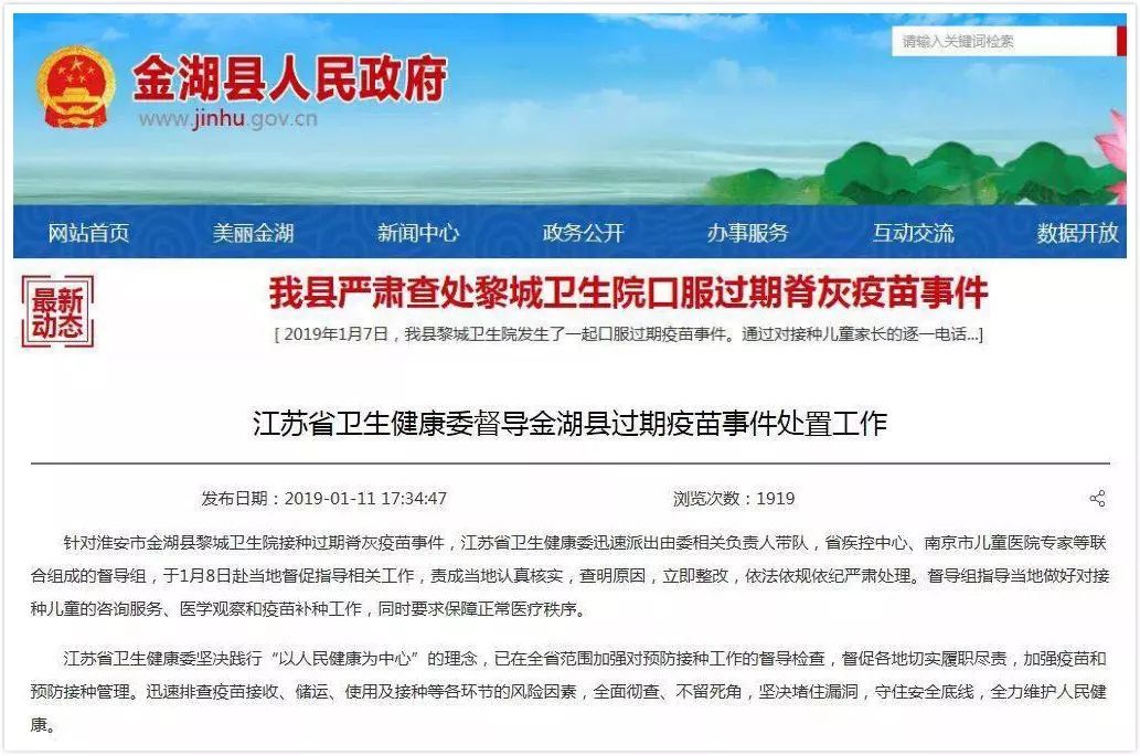 1月初,金湖县过期脊灰疫苗事件,引发舆论关注。据央视新闻1月11日晚