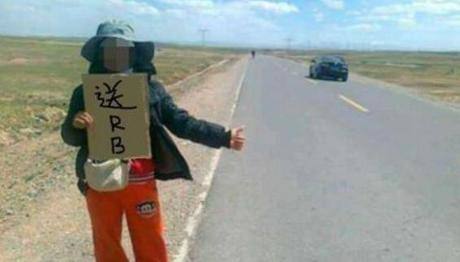这位老司机称道:试试你就知道了!驴友百思不得其解,刚好遇上了一位举着求混账牌子的女生,便停下车来问清楚。才知道,这位女生是穷游爱好者,希望能够用最少的钱,去一次西藏游玩!