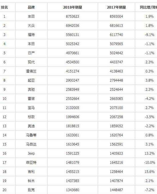 排名第一和第二的仍旧是丰田和大众,丰田全球销量875万台,大众全球销量694万台。夸张的是,大众汽车仅在中国的销量就有410万台,这......,所以说,世界的丰田,中国的大众。
