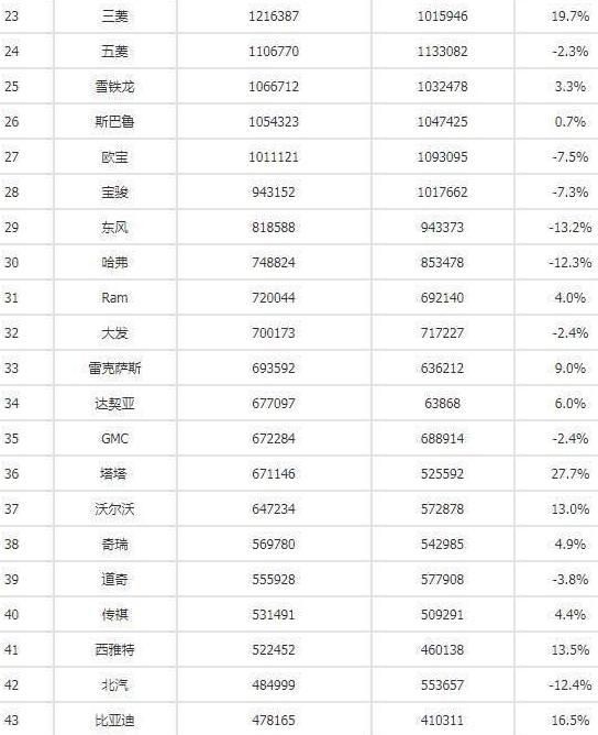 最后,激动人心的是吉利汽车在全球销量排名第18,是中国汽车品牌在世界上有史以来的最好成绩。除此之外,长安汽车排名第22,哈弗汽车排名第30,比亚迪汽车排名第43。我们相信,自主品牌在全球崛起,指日可待。