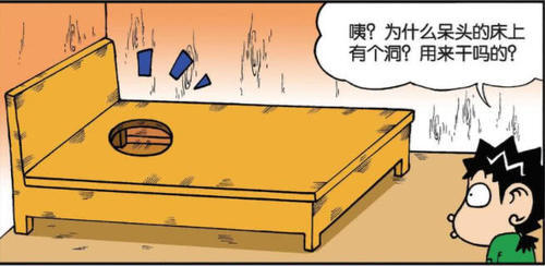 旺财来到呆头的卧室,不过这家伙的床上怎么有一个大洞?这里面有什么说法吗?说着就好奇的看着刚走进来还打着哈欠的呆头,等到呆头躺下了之后,旺财才明白,一脸无语的看着眼前的情况,原来是呆头睡觉放头的地方,这下就不用枕枕头了...这,也只有呆头能想出来了吧。