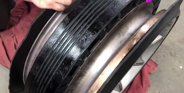 尽管用的是一台齿轮磨砂机,切开轮胎这种事情原本应该很简单,但是小哥在切轮胎的时候看上去却十分费劲,小哥对准了轮胎的横切面,直接进行切割,切开以后才发现,这个轮胎所用的橡胶材质,不是普通轮胎的橡胶材质,而是专门进行过强化的,所以才会造成切个轮胎都这么费劲,这也是为什么我们没有看到过劳斯莱斯爆胎的新闻,实际上从这一点我们就能看出,劳斯莱斯的做工有多么精细,在轮胎被切开之后,两位小哥发现轮圈的构造跟普通的汽车有很大的不同。