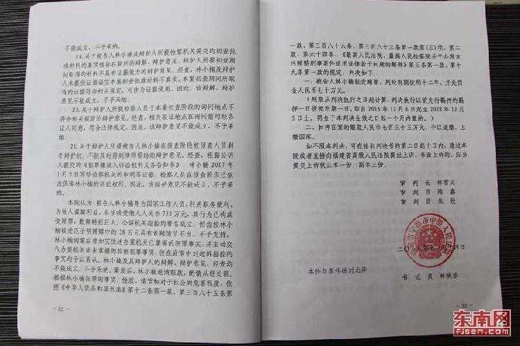 宁德市检察院:该案是由宁德市纪委于2016年9月6日以林小楠涉嫌严重违纪予以党纪立案“两规”调查,于12月4日以林小楠涉嫌犯罪移送我院依法处理。我院于当日立案侦查,于2017年6月5日对被告人林小楠涉嫌受贿一案提起公诉。经宁德市中级人民法院公开审理,认定被告人林小楠在2010年至2016年上半年担任福安市人民政府副市长、代市长、市长期间,利用职务便利,为他人在项目用地申请、征地拆迁、资金补助、工程款拨付、协调银行贷款、免除税收处罚款、房地产项目竣工验收等事项上提供帮助,先后多次非法收受福安市金宏运混凝土有限公司等企业以及范子明等个人贿送的钱款,共计人民币733万元。2018年11月13日,宁德市中级人民法院作出一审判决,以受贿罪判处被告人林小楠有期徒刑十二年,并处罚金人民币70万元。林小楠不服判决提出上诉,目前案件在二审审理中。