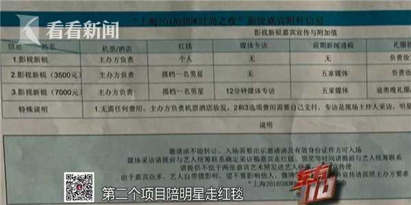 于是妮妮动了心,并给对方留了微信号。不久一个名叫"妍宝"的微信号添加了妮妮,对方自称"赵妍"。她将一系列活动材料通过微信发送给了妮妮。活动有一些收费项目,比如和男明星一起走红毯需要支付3500元,接受媒体专访还要支付7000元。妮妮二话不说,在微信上给对方转去7000元,购买了最高级别的宣传项目。