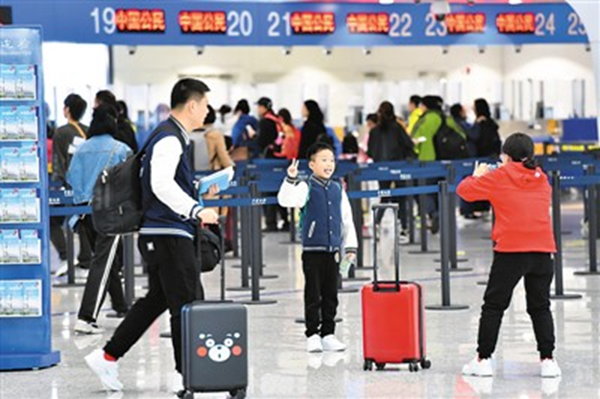 准备出境旅游的市民正在广州白云机场通关。新华社记者 刘大伟 摄