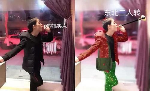 生活中有的人是很搞笑的,就像这个穿着黑衣服的人,在第一眼看到他的这个姿势时,就觉得非常的有趣。但他还是不满足,希望能变得更加搞笑一点,没过一会儿,出现在面前的就是穿上了二人转服装的样子,手中还拿着唢呐,这个形象还真的是很生动呢!不过仔细看去,最吸引目光的是他的头发,看那往起翘着的样子,简直是萌的不行。