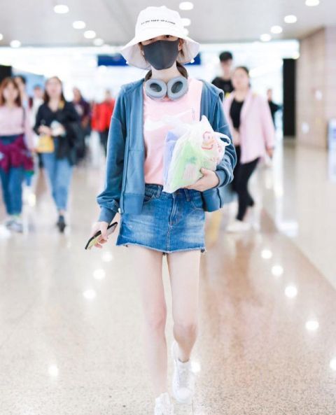 冯提莫这身造型依旧很靓丽,她挑选了几件款式都很简单的单品,粉色圆领T恤搭配连帽款开衫外套,下半身再搭配一条很短的牛仔裙,不仅能增加时尚元素,还显得她的腿超级长,而且这次穿的鞋子鞋底也较厚,更显高。