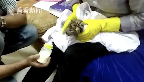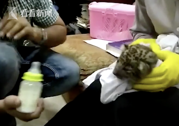 这只小花豹仅有一个月大,重一千克,受到了巨大的惊吓并且十分虚弱。于是,海关官员先给它喂了奶,随后,将它安置到当地一家动物园。