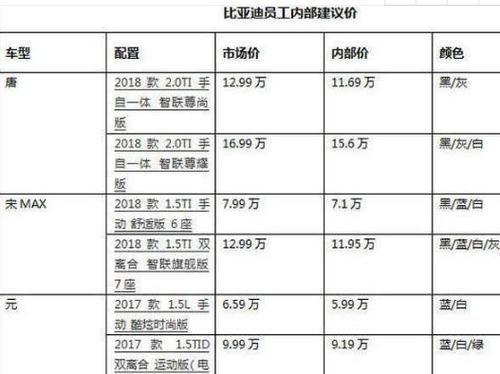 由于比亚迪的员工大都开自家的车,这让外界对比亚迪员工的内部提车价好奇不已,近期一份比亚迪的内部员工购车价被走漏消息,比亚迪主推的几款车型也在其中,而它的内部价和市场售价差别不是一星半点,每款车都少了一两万之多,当然这个价格应该还会根据员工的资历而有所调整,资历深的员工当然能以更低的价格购车,如此以来比在市面上买一辆自己不知底细,且价格极贵的车型强的太多了。除此之外,内部购车还有一个福利,可以在工厂