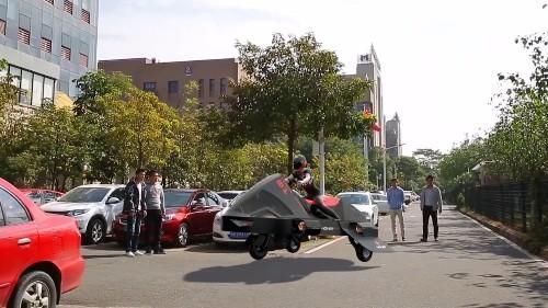 这几个小伙子所研发的是可以飞行的载人摩托车,这在我国可是首台。这款摩托车不光造型时尚,而且在质量上面也十分的坚固耐用。