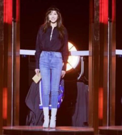 她穿着一双白色的高筒靴。把自己的裤子塞进鞋子里,看上去非常的时尚还保暖。一身非常普通的打扮,却让她穿出了唯美的仪式感,很多女粉丝留言,这么洒脱的鞋子跪求链接。