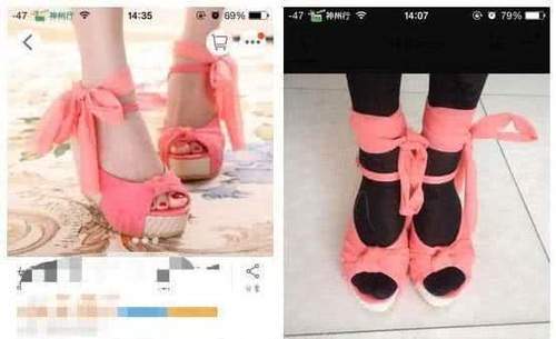 2.粉色的绑带鱼嘴坡跟凉鞋,穿在模特脚上就很淑女!但是当买家搭配一双黑色的丝袜的时候,这个感觉就真的是消怡殆尽了,满屏都是尴尬的气氛啊!