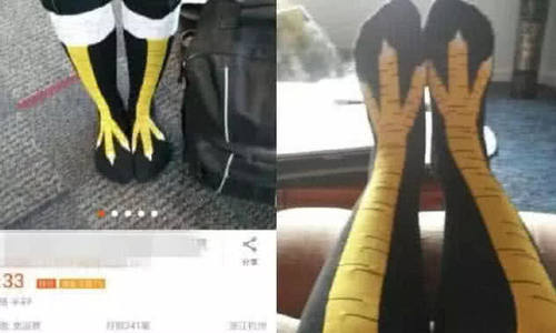 4.小姐姐晒出的买家秀也是令人笑出眼泪了,小编是在想象不出到底要多强大的内心才能够穿着这样的“鸡爪袜”出门,这个画面真的是非常的喜感了,不过33元的价格还是很良心了,可能小姐姐是要做搞笑表演?