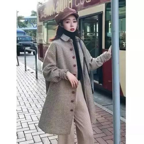 上身效果超级不错,还带点小慵懒的感觉。毛呢材质摸上去非常地细腻有手感。