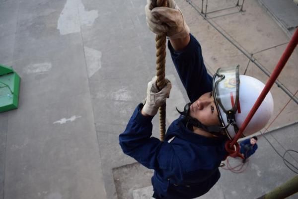 大年初一,阳泉消防救援支队南山支队消防战士训练绳索攀爬。记者 崔国强 摄在南山中队的下午训练时间,队员们娴熟地做起单杠卷身上、双杠臂屈伸、深蹲练腿、绳索攀爬等训练动作。据齐亚东介绍,他们从去年12月开始冬季训练,现在每人每天训练时间不少于5小时,特别增加了森林火灾处置常识和紧急避险的专业知识,并增加了10公里的越野跑科目。“我们从扑火战术、指挥原则、基本技能、安全防护四个方面深入学习,觉得特别充实!”战斗一班副班长张虎说。