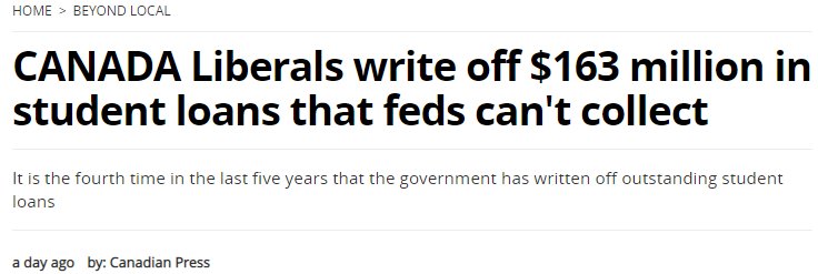 联邦政府已经决定勾销1.63亿加元无法追还的学生贷款!
