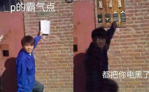 这位小伙子手拿书本依靠在墙上,好像在向大家介绍自己所学的专业,但是他觉得拍出来的照片不够霸气,于是就想让大师将照片p得霸气一点。没想到大师直接在墙上加了一个电闸,小伙子不小心触碰结果浑身都变成了黑色的,这是被电黑了吗?