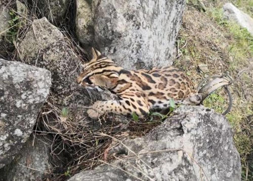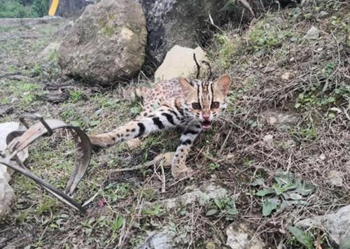 [分享]云南省红河州豹猫误中非法捕猎者陷阱 当地村民发现后报警营救