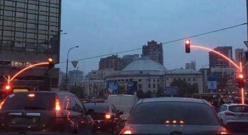 据网友反映,乌克兰的红绿灯设计的还是非常别致的,至少和国内的有很大的区别,首先这样的交通信号灯采用的是弧形的设计,在一定程度上就可以扩大人们的视野范围,另外,这样的红绿灯设计的灯杆也是会根据信号灯指示的颜色相应的变化的,出现的红绿灯就不是一个点而是一片,这就不会让车主出现误闯红灯的行为。