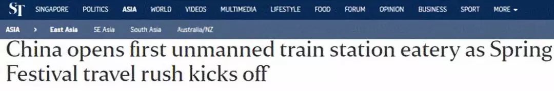 《海峡时报》:中国铁路首家智能无人餐厅开门迎春运
