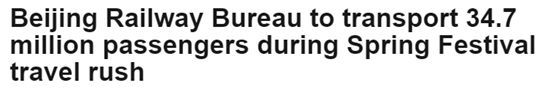 《巴基斯坦商业纪事报》:北京铁路局将在春运期间运送3470万旅客↓↓