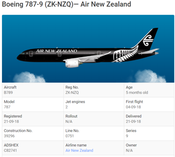 飞行信息网站planefinder的数据显示,上述航班由注册号为ZK-NZQ的波音787-9客机执飞,该飞机2018年9月接收,机龄仅5个月。有航空分析人士称,这架飞机很可能未在中国民航部门注册备案,因此无法获得落地许可。