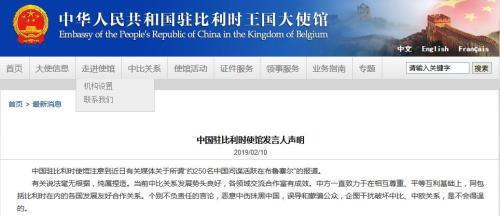 声明指出,有关说法毫无根据,纯属捏造。当前中比关系发展势头良好,各领域交流合作富有成效。中方一直致力于在相互尊重、平等互利基础上,同包括比利时在内的各国发展友好合作关系。