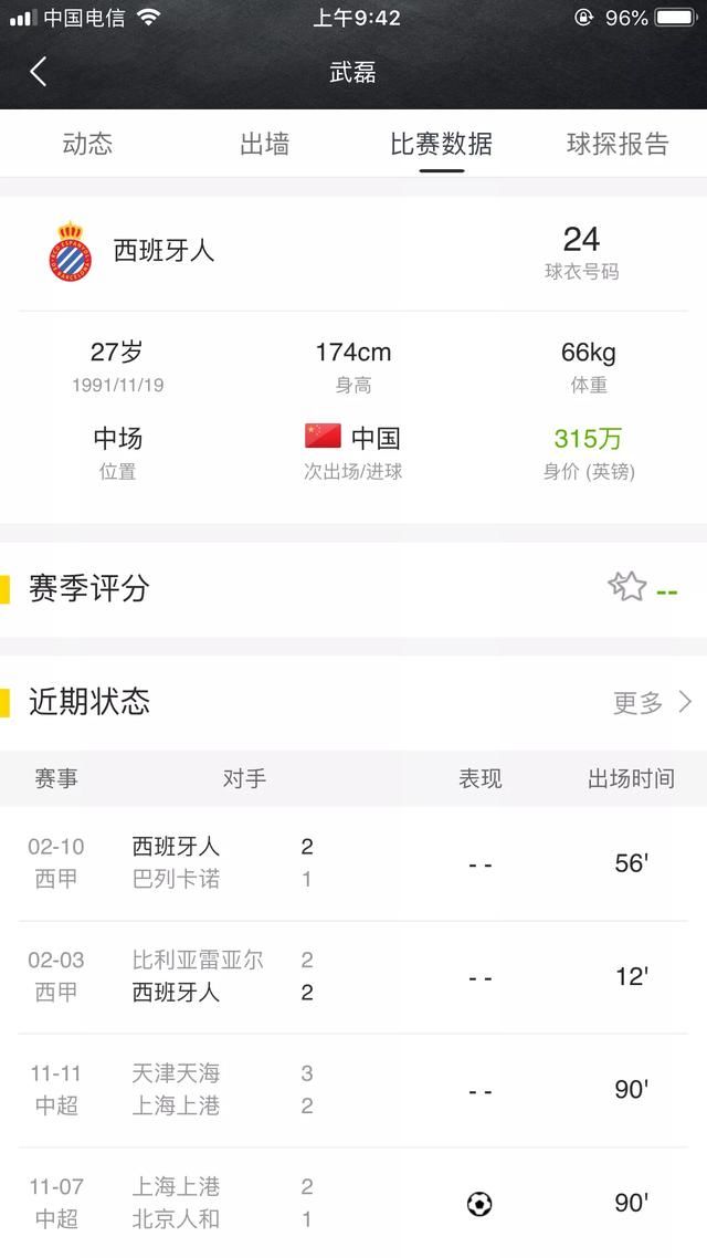 可以看到,身高174cm的武磊体重却只有66kg,这样的身材是很难立足西甲的。更不用武磊的特点就是吸引对方后卫放铲,你都到禁区了我还不想尽一切办法阻止你?其实早在武磊留洋之前,国内足球名记徐江就已经表示过,担心武磊适应不了西甲的身体对抗节奏了,武磊在西甲的未来很难成为一名大腿主力,替补大腿还有可能,总之祝武磊好运吧!