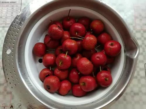 2.山楂加少量的盐泡水5分钟清洗干净,洗干净的山楂沥干水份
