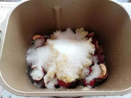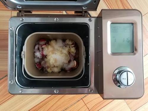 6.苹果也一起放进面包桶里,在苹果上面放上白砂糖