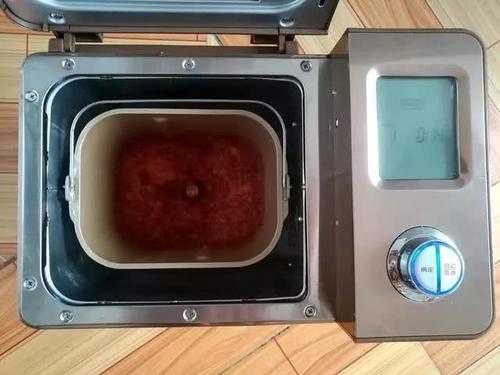 5.用料理机打十几秒打成比较细小的颗粒,把山楂放到面包桶里