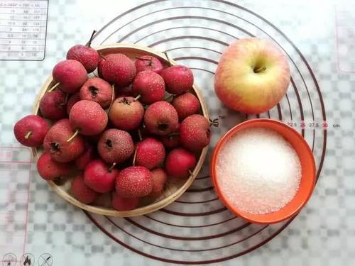 苹果 1个、山楂 500克、白砂糖 150克、玉米淀粉 10克、水 35克