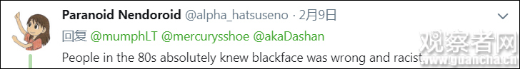 去年10月,当时的NBC女主播梅根·凯利(Megyn Kelly)也曾对“涂黑脸”是否属于种族主义提出异议。