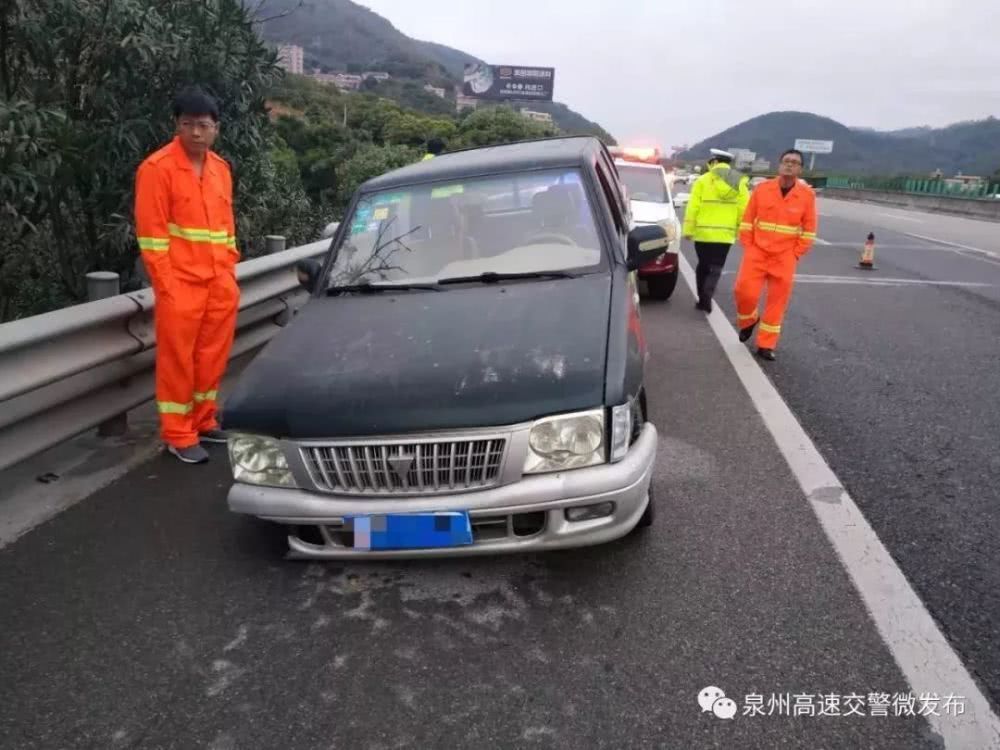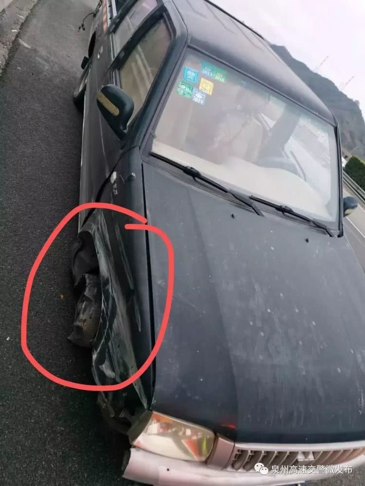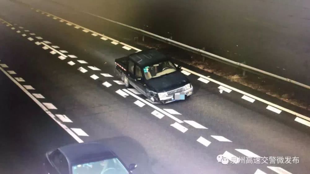 接到报案后,民警沿着过路司机报警的路线一路巡查,从泉州往福州方向寻找,再在福州往泉州方向寻找。民警终于在福州往泉州路上2210公里处的应急车道上发现了一辆疑似事故车的皮卡。