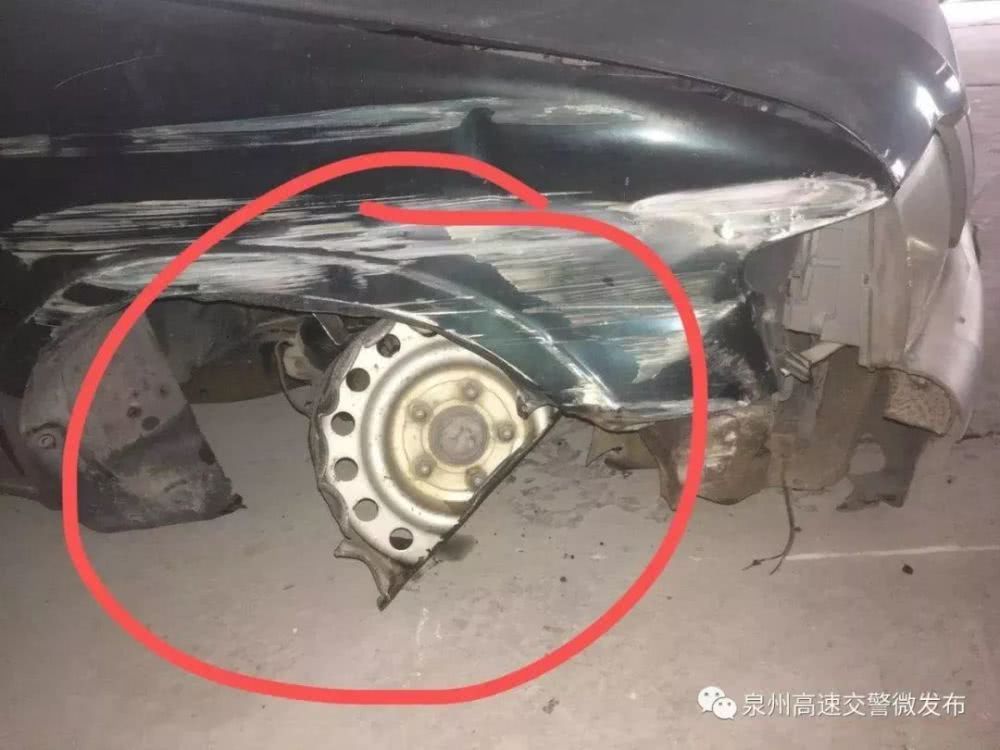 经过勘察后民警发现,该皮卡车右前轮轮胎早就消失不见,原来是圆形的钢圈被严重磨损到变成半个钢圈。