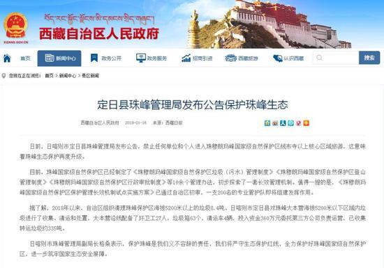 ▲定日县珠峰管理局发布公告保护珠峰生态 (via xizang.gov.cn)