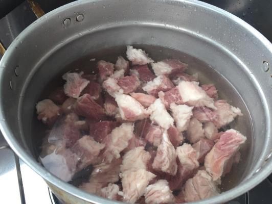 第一步,首先将牛肉放到碗中,往里面加入花椒,食盐料酒,生姜,用筷子将其搅拌均匀,大概腌制六个小时,再将腌制好的牛肉冲洗一遍,放到锅中加入适量的冷水开大火。这样就能够将牛肉当中的血水和杂质全部煮出来。
