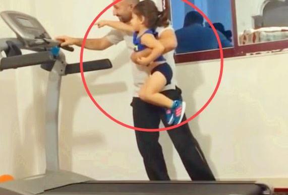 老爸刚把宝宝放跑步机上,接下来宝宝这动作,爸妈都看傻眼了