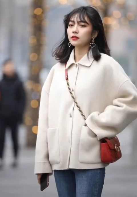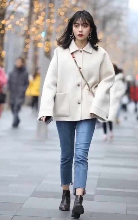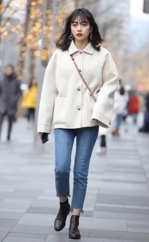 这种十年前流行的裤子,牛仔裤上面飘着白色的点点,如同雪花一般存在,在10年前非常流行,当初可是在大街上看到十个人,会有八个人穿这种类似的裤子,不过已经很久没有人穿了,好多人都已经遗忘了这条裤子,但是被这位女生演绎得更加的时尚,看起来也更加