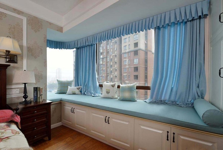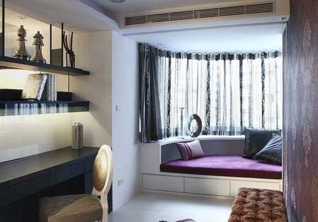 卧室窗户可以预留飘窗大小的空间,这样让木工来做一个飘窗柜,比起开发商用混凝土做的假飘窗,这种飘窗柜更实用,它可以根据住户的需求来量身定制,不仅看起来好看大气,还能增加收纳的功能,而且也有飘窗的休闲作用。