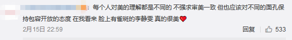 但也有网友表示,应该包容不同种类的美,不能只活在美颜相机中。“每个人对美的理解不同,应该对不同的面持有包容的态度,脸上有雀斑的模特也很美”“不要活在美颜中,真实点不好吗?我觉得这样很美啊”。