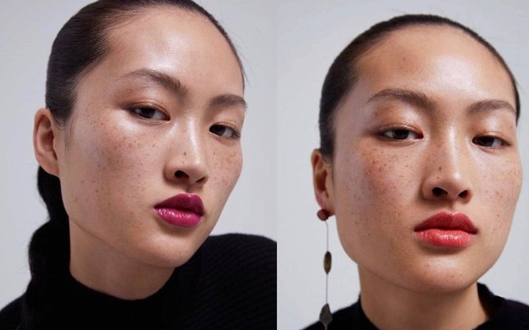 继意大利品牌D&G广告被曝出“辱华”争议后,西班牙时装品牌Zara也卷入这一风波。周五(15日),Zara在微博上线了一组彩妆广告,从广告照片中能清晰看到中国面孔女模特脸上面积较大的雀斑。