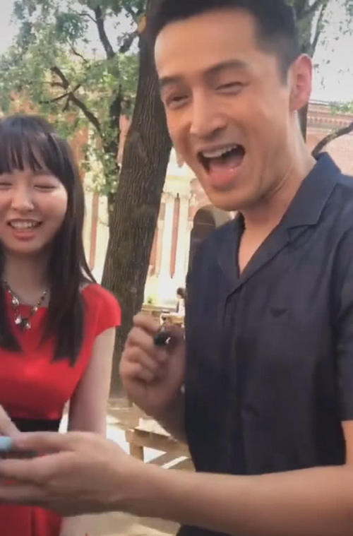 而胡歌这时候再也忍不住,就很自然地笑了出来,做出了非常夸张又搞怪的表情!原来,胡歌是华为手机的品牌代言人,也不知道是处于代言人的规定,还是胡歌的一句玩笑话。这么一个小插曲就被胡歌的小玩笑给提升了气氛,惹得周围的粉丝也哈哈大笑!