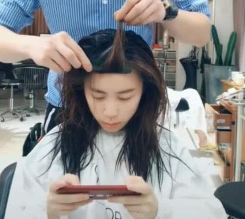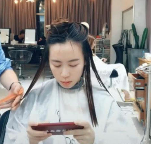小姐姐的颜值也是还可以,特别的是小姐姐一直在低着头玩“吃鸡”,全程都没怎么抬头。小姐姐对理发师也是很有信心了,一点都不担心会把头发剪坏