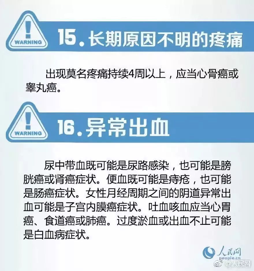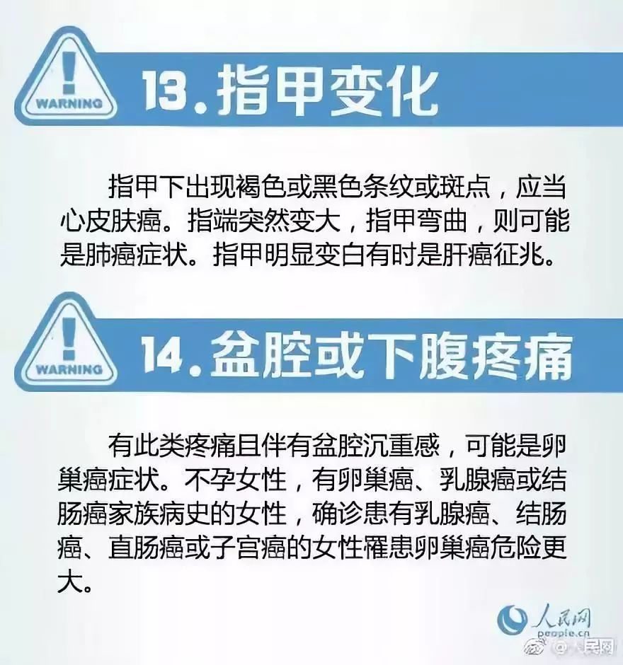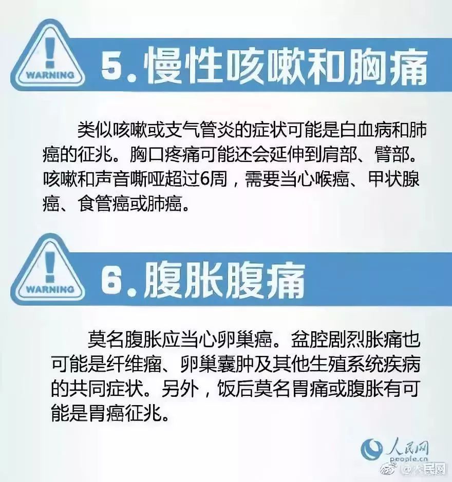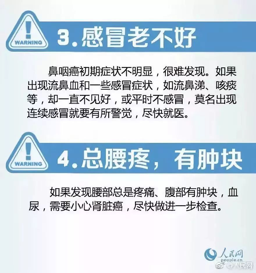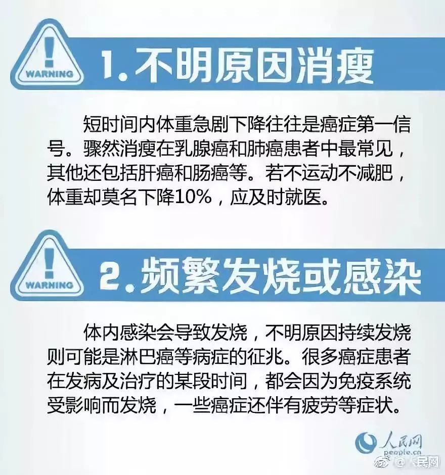 中国每年新发癌症病例超过300万人,每年超过200万人因癌症死亡。令人痛心的是,其中大约有60%是可以避免的。其实癌症来临之前,身体都有很多信号,每个信号都给了你防止癌变的机会!