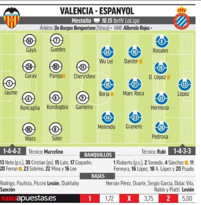 今天西班牙人将客场挑战与其积分相近的瓦伦西亚队。中国球员武磊则极有可能迎来自己的西甲联赛首秀。