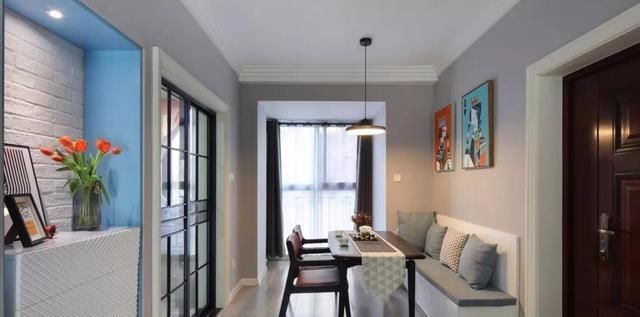 餐厅需要兼备过道的功能,所以有有限的空间内设计出了卡座形式,扩大餐厅的使用方便程度,这样都可以舒适的过人,视觉效果也很不错。整屋的地面都是实木地板,而且是带有木质肌理感的,会显得比较自然舒适一些。