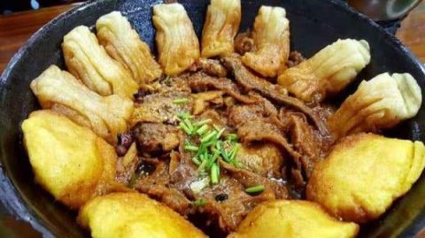 随即放入肉片再炖,肉片熟后,将肉片盛起,将剁碎的干辣椒,花椒末撒上。